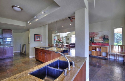 Perfect for a 4 couple getaway or 2 Family gathering!!! Located in California's world renowned wine country, this 3,500 sq. foot Mediterranean home has casual elegance with expansive grounds, beautiful decks and patios, and SOLAR HEATED SWIMMING POOL (enjoyable from April-October). Take advantage of our fully equipped kitchen, spacious living space, wood burning fireplace, and breathtaking views from every room in the house. Our 4 large king bedroom suites are quite secluded both from each other and the common living spaces, and feature private full bathrooms (en-suite) completely within the bedroom quarters.