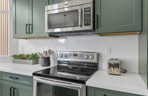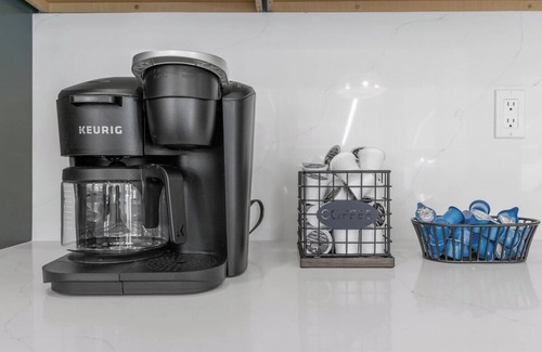 The fully stocked kitchen is a chef’s dream, equipped with everything you need to whip up delicious meals. From coffee, creamer, and an array of spices to sugar, flour, syrup, and Pam spray, we’ve thought of all the little touches. Enjoy the use of modern appliances like an air fryer, crockpot, mixing bowls and many extras to make your stay easy and enjoyable.