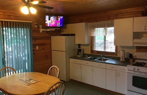 Our pet-friendly rustic cottage boasts pine interiors, a fully equipped kitchen, satellite TV, and Wi-Fi. Enjoy evenings on the deck with a BBQ, our unique 2-bedroom cottages overlooking the lake. Need more space, rent a few cottages for your big families.