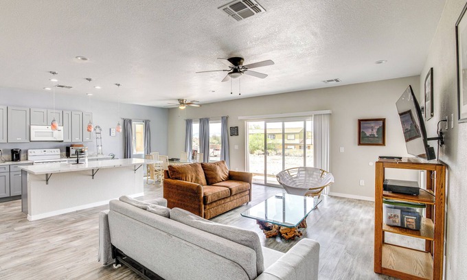 Enjoy the best of Bullhead City from the comfort of this 2-bedroom, 2.5-bath vacation rental! Perfect for outdoor enthusiasts, this convenient home offers easy access to the Colorado River, Lake Mojave, and endless mountain adventures. Chasing a different thrill? Try your luck at a nearby casino! When it's time to unwind, you can seamlessly serve up home-cooked meals and get cozy with your favorite movies. Book today!