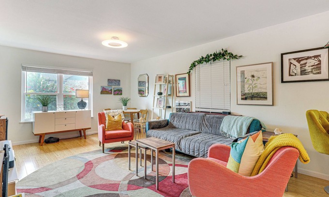 Nestled in Austin's laid-back neighborhood of Mueller, only 4 miles from downtown, this 2-bedroom, 1-bath vacation rental is an ideal base for your urban adventures! Stroll through the Texas Farmers' Market, then fuel your spirit with an exhilarating FC game at Q2 Stadium. As evening sets in, embrace your inner chef in the fully equipped kitchen or spark up the grill for a backyard barbecue. Book this home today!