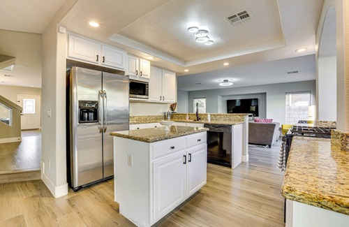 Set amidst the charm of Henderson, this 4-bedroom, 2.5-bath vacation rental home puts fantastic restaurants, shops, and local attractions right at your fingertips! Sip your morning coffee on the back patio. Later, try your luck at a local casino or splash away at Cowabunga Bay Water Park. After your adventures, gather in the kitchen for your favorite treats and enjoy a relaxing movie night with loved ones!