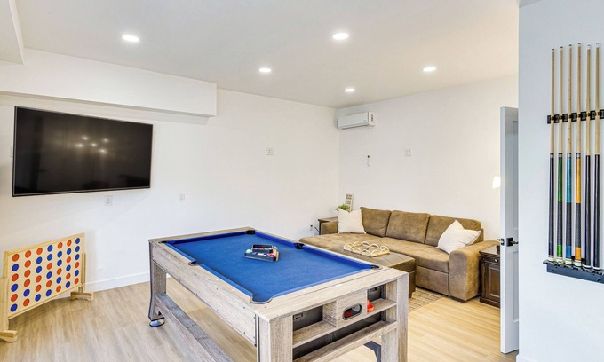 Tucked into the View Park-Windsor Hills community — less than 10 miles to both DTLA and the beach — this vacation rental is primely located for a well-rounded SoCal stay. Whether you’re here to explore top attractions or simply seeking a spot to rest between coffee runs and coastal sunsets, this 1-bedroom, 2-bath home delivers. Inside, you’ll find a full kitchen, in-unit laundry, and a lounge space with a 3-in-1 game table.