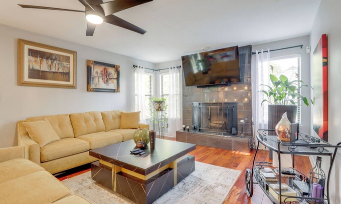 Plan your getaway to this stylish 2-bedroom, 2.5-bath vacation rental home, just minutes from Stone Mountain Park! Nestled in a quiet neighborhood, 'The Eclectic Escape' offers multiple living areas and a furnished patio — perfect for enjoying morning coffee or relaxing in the evening. Going out? Ride the Summit Skyride to the top of Stone Mountain, or visit top attractions like the World of Coca-Cola and the Georgia Aquarium!