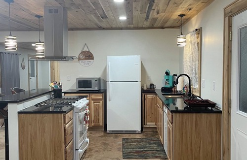 Our Cozy home has a lot of open space and large porches to relax, listen to nature, and take in the natural beauty of the great smoky mountains. A full kitchen, dining area, and fireplace for a romantic getaway. Two Master bedrooms with new memory foam mattress: 1st Master bedroom with king bed and master bath with a soaking tub and rainfall shower head, second bedroom with king size bed and full bath (stand-up shower). Well insulated to keep it peaceful and serene as you enjoy the natural sunlight, poplar ceilings, and earthy feels. It's a great place to vacation, unwind, or focus on work.
