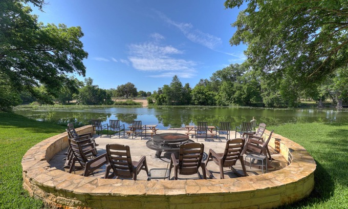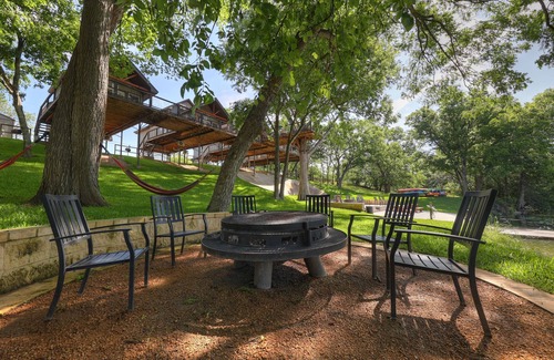 Honeys Nest: Perched amongst towering Cypress trees, our four river-front cabins with spacious decks offer stunning views of the river and hillside. The private dock is ideal for swimming, fishing, or launching kayaks and canoes for fun afternoon outings. Enjoy majestic sunsets with a glass of wine by the firepit and drink in the natural beauty of the Texas Hill Country.