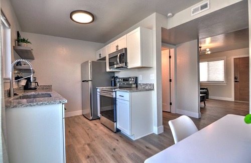 These units were fully remodeled with functionality in mind! You will love the clean minimalist design with big functionality packed into this unit! Each unit has a private, fully fenced patio with BBQ grill and outdoor dining so you can fully enjoy the Colorado sunshine. Fully stocked kitchens for cooking. High end finishes throughout. Upgraded memory foam mattresses and deluxe pillows for a good nights rest. Central air conditioning keeps you cool in the summer time. Centrally located to all activities the Grand Valley has to offer. CMU, Colorado National Monument, Mountain biking, hiking, Fruit and Wine Byway, and much more.