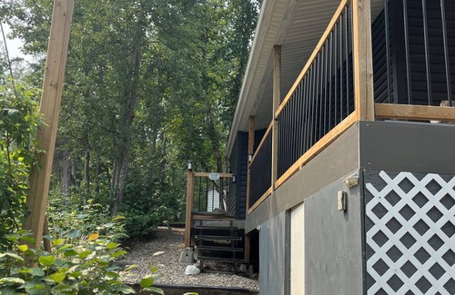Front covered deck, back yard with eating area, fire pit area and BBQ. Pet friendly.