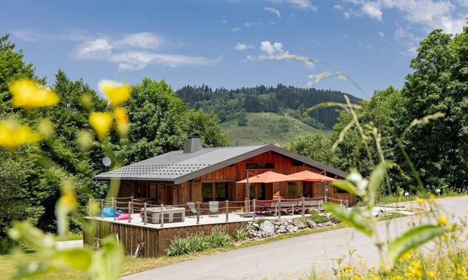 4-star chalet between lake and mountain, jacuzzi, sauna, opposite the slopes is located in Habere-Poche. 4-star chalet between lake and mountain, jacuzzi, sauna, opposite the slopes provides accommodation, featuring Parking, TV, Security/Safety, among other amenities. This Ski Chalet features Parking, TV, Security/Safety, to make your stay a comfortable one.