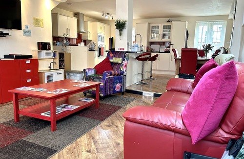 This Modern & contemporary Duplex apartment (over 2 floors, 1 set of stairs) is suitable for up to 5 people, it is light & airy & more spacious than the pictures show. it has a secure decked courtyard garden with BBQ, this is accessed from French doors from the bedrooms, it has all modern conveniences to make your stay a great one.
