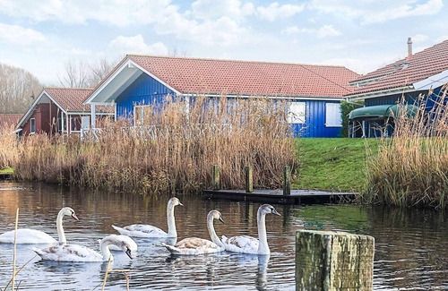 Experience an idyllic holiday in the North Sea resort of Otterndorf, just a stone's throw from the Elbe estuary. This charming destination offers the perfect retreat for families, nature lovers, and those seeking peace and relaxation. The man-made swimming lake, which defines the resort, enhances the serene, natural atmosphere. Enjoy endless entertainment with various leisure activities available for all ages. Stay in this comfortable Scandinavian-style holiday home, ideal for large families or groups of friends. The bright living area with a cozy fireplace invites togetherness, whether cooking, playing, or unwinding. From the living room, enjoy a view of the pool area through the glass wall, where hours of fun await in the large pool, children's pool, and counter-current system. Relax in the whirlpool or warm up in the private sauna. The house is located by the swimming lake with a beautiful view and is right by the Elbe dike. Unwind on the large sun terrace and enjoy the peaceful surroundings. The children will love the entertainment center, with tennis, table tennis, and mini-golf. Rent bikes for a scenic ride, or paddle around the lake with the house's canoe. Fishing, surfing, and boat trips to Helgoland are also available. The nearby town of Otterndorf with its timber-framed houses and quaint streets adds to the unforgettable experience.