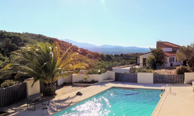 Independent accommodation and without any vis-à-vis. You will enjoy the overhanging terrace, facing the mountain and enjoy the barbecue and sunsets on the Canigo. Magnificent view, both from the sofa and from the private swimming pool of 10m x 5m. (The owner couple, quiet and discreet people, use it only in your absence). A plot of 300 m² will be for your exclusive use. Fully air conditioned. Wireless. Everything is included: charges, bed and bath linen and cleaning. And the beds will be made upon arrival. Holiday vouchers and credit cards accepted.