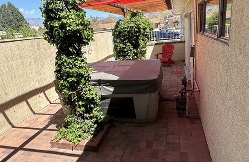 Enjoy your 4 person hot tub with mountain view and cozy backyard BBQ and fire pit.