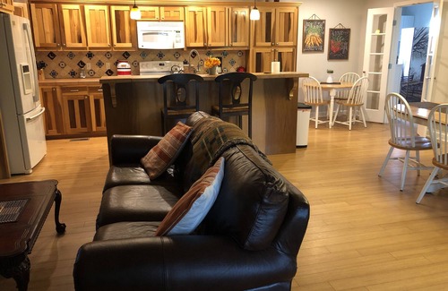 Modern farmhouse on a 400 acre working farm with cattle. There are 2 homes on this 400 acre Farm , this being the second home on VRBO. There is an open kitchen, living area that also opens up to a long comfortable enclosed porch. 3 bedrooms with queen beds and one large room with 4 single beds , 1 being trundle pull out beds. 2 full bathrooms. A secluded peaceful place to stay in Middle Tennessee.
