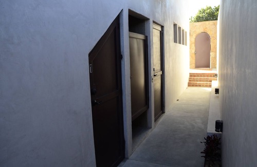 You can choose to enjoy showering in a private outdoor or in-door shower. The outdoor shower has sombre (shade) from a Morenga tree canopy overhead. When you step into the in-door shower, you will be stepping on little chicas (small stones) lovingly selected from the playa of The Bay of Dreams. The vanity was designed by the owners; the base made of iron, a Mesa of cement for the countertop, and a ceramic vessel sink that was carried across the border from Southern California. For additional guests, Gonzolo made a beautiful Mexican armoire, which hides a comfortable Queen Murphy Bed in the living room. For your convenience, each unit is provided with a secure bodega (locker) for your gear, extra luggage, and toys. We have an additional private outdoor shower between the two bodegas so you can rinse the sun and beach off your wet suit. We also provide secure parking for one car for each apartment.