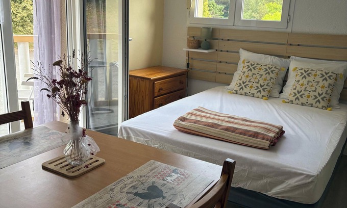 400 meters from the thermal baths, lovely, quiet studio with balcony not overlooked. | Apartment in Eugénie-les-Bains