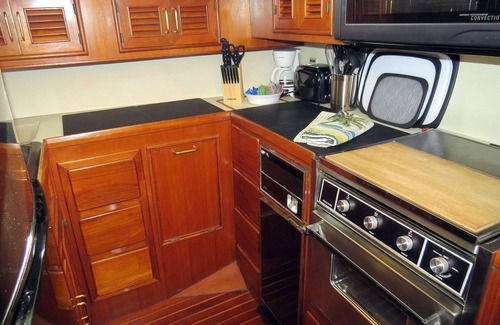 Super Spacious 42' Ponderosa with 2 large staterooms, each with their own head (bathroom) and located at opposite ends of the boat (forward and aft). The main salon features a flat screen smart TV, movie collection and comfortably sits 6-8 on a sectional couch and chairs. Entertainment space extends from the salon up to the Sun Deck and Fly Bridge making space for up to 12 guests. The back Sun Deck is fully equipped with a wet bar, refrigerator and ice chest. With the lovely table and chairs this gives you another option to enjoy a meal with friends or share a glass of wine right on the water with Mount Rainier as your back drop. Views from the Sky Bridge and Sun Deck are truly breath taking overlooking the rest of the harbor. The galley is fully stocked with all the comforts of your home kitchen. There is a coffee maker, full size refrigerator, dishes, glassware, flatware, bowls, cutting boards, standard spices, and pots & pans. This incredible, comfy floating inn has all you could need for your stay and is only a short walk from downtown where there is always something to do. Experience 7 Seas Brewing, Heritage Distilling Co., The Tides Tavern, some incredible downtown waterfront shops and beautiful Skansie Brothers Park right next door.