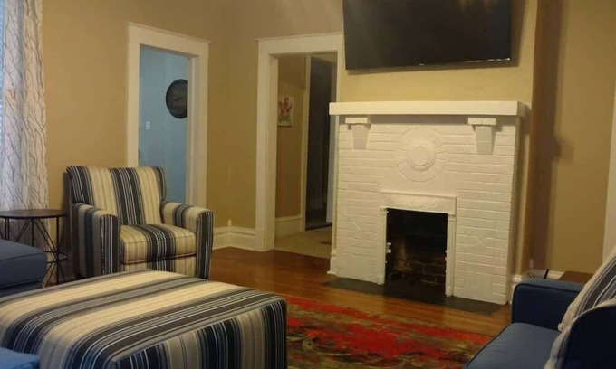 The Charm of this 3 bedroom 2 bath Historical Home downtown with modern amenities including a large, full & completely furnished kitchen with separate dining, plus top of the line Cool Gel memory foam medium firm mattresses and large flat screen TV's will surely please you and yours! High ceilings, original hardwood floors, three decorative fireplaces and large covered front porch with swing and cushioned outdoor furniture comfy furniture is also a big plus! The unique atmosphere will set you back in time as you swing on the front porch or conveniently take a stroll only a few blocks downtown while you pass our Artsy Library and Wilson Park with the large water fountain feature before reaching The legendary Shoals Theatre, UNA college, several shops, unique restaurants and many other attractions downtown! This home is one of a kind and is so comfortable it feels like home away from home!