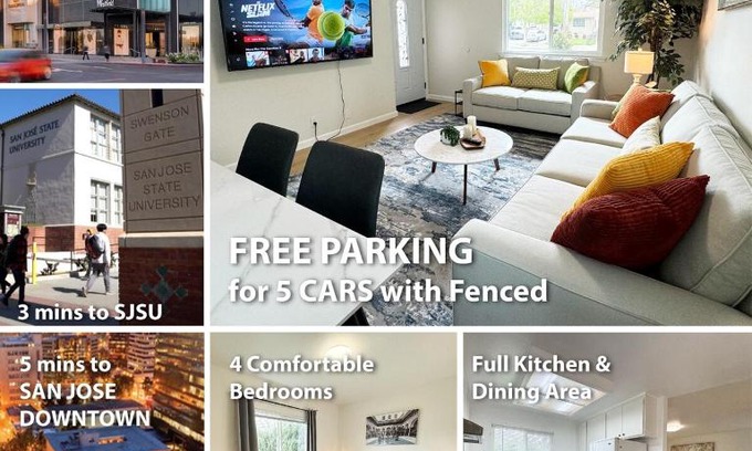 - 438 Comfortable 4BR Heart Downtown SJ central AC SJSU