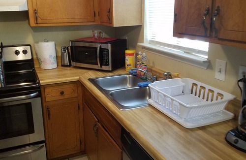 Includes: Fully furnished; Fully equipped Kitchen, Refrigerator, Microwave, dishes, utensils, pots, pans, silverware, spices, toaster, can opener with; towels, bath soaps and shampoos, cleaning supplies, vacuum, all utilities, tv internet, wifi, washer/dryer; central air and heat, Queen size beds in each bedroom and furnishings; luggage racks tv's in each bedroom and one in living room and much more