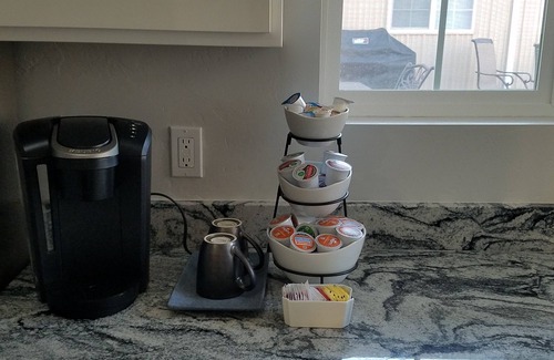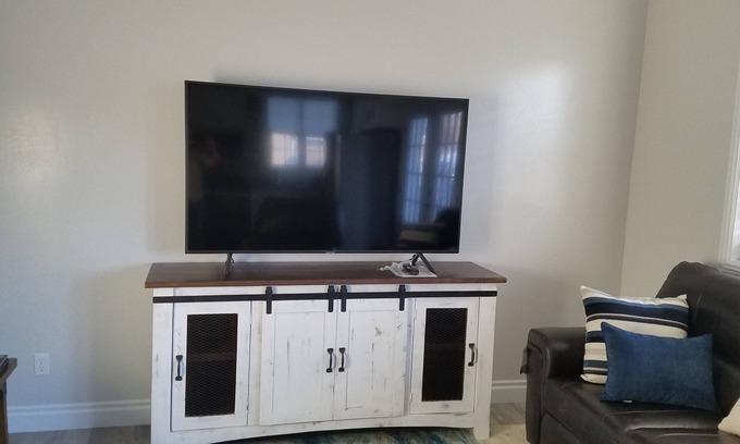 New Construction, Guest house with full kitchen with a Island for setting and a dinning table, opens into living area, with 65 inch TV. One bedroom and Sofa sleeper. Large bath with double sinks , shower and lighted mirrors, washer and dryer. Large deck with Gas grill and Treager smoker to cook on,lots of seating area on a Large out door deck. This home is close to Arches National Park is just 45 minutes away. Goblin Valley State park and the San Rafael Swell 48 minutes from our location.