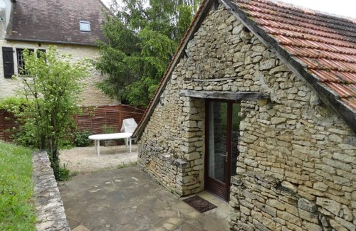 Gite fitted out in an 18th century barn, adjoining the owners' house with a totally independent entrance, located in a hamlet. The gîte is an old barn and enjoys a pleasant orientation. Walking paths from the gite, Dordogne river beach 100m away. Gîte on one level: Living room (with fireplace, library) / kitchen area, 2 bedrooms (1 bed 1.40m, 2 beds 0.90m), bathroom with toilet, terrace with garden furniture and barbecue, open ground, enclosed courtyard. Oil central heating and fireplace with insert. The off-season rate includes heating. Baby equipment on request.