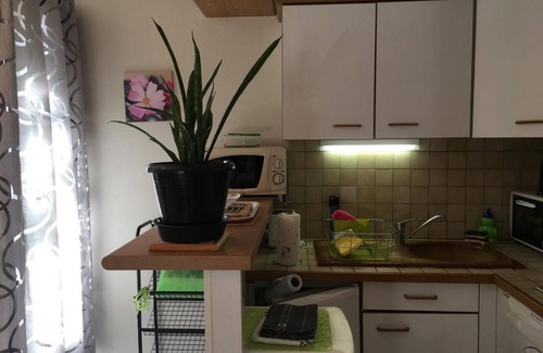 Self-contained single-storey gite, located in an oak grove next to gite 46G1905 for 2 people, not overlooked. Typical natural exterior, quiet environment, close to Cahors and the Lot and Célé valleys. Living room/kitchen area, fixed 3-seater sofa, flat screen TV, table and 4 chairs, 1 bedroom (1 1.40m bed and built-in wardrobe), separate shower room, wc. Pressure cooker and baby equipment on request. Covered terrace, open ground. Laundry room in an outbuilding with freezer. Electric heating in addition on meter reading (8kwt per day included in the price).