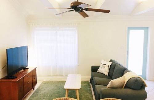 Come relax in our beautiful and fresh Florida cottage only a few miles from the beach! With plenty of natural light, vaulted ceilings, and open kitchen and living room, this two bedroom house is gracious but also cozy. You re sure to enjoy our fully equipped kitchen and pleasant breakfast nook with french doors leading to a private outdoor terrace. Both bedrooms have abundant sunlight, sleep two guests and have generous closet space. Amenities include laundry, two parking spaces, wifi and TV.