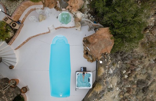 Enjoy peace and tranquility at this 5-acre residence, on a mountainside, overlooking the city, while swimming in our pool, or relaxing in our spa. The National Park is your backyard. Boasting 2,387 sq ft, an open layout, vaulted ceilings, and massive windows throughout. Explore Joshua Tree National Park’s 49 Palms Oasis trail, located less than 1-mile from the house. An ideal vacation for 6 people or less over 25 years old to “unplug” and get away from fast-paced living.