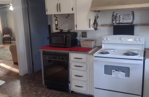 This is a 2 bedroom one bath home. basic necessity for outof town guests. All the rooms have double beds. It is older home, but kept up.. We can accommodate overnight guests, but they do need to be registered, It is great for family and children. There is no Central conditioner, but there's air conditioning unit in the living room and in all the bedrooms, it keeps the house pretty cool. Walls are thin, so you may hear conversations. There are no TV's in the rooms, but you are able to use laptop with the Wi-Fi provided. There is a TV in the living room, with access to Hulu, Netflix, and other apps. Pets are welcome, but we do not have a closed fenced area so they cannot be let loose unless they are trained to stay by your side. Please do not allow your pets to defecate or urinate on neighbor's property, and please clean up after your pets. There is plenty of parking We are conveniently located close to the airport. There is a nice patio screened in to enjoy looking out into the peaceful trees. Smoking is not allowed in the house, but you're welcome to smoke outside.