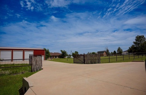 Horse-friendly with an on-site horse hotel. Perfect for families with kids and pets—dog kennel and playground included! Enjoy peaceful country views, wide open land, and a private hot tub. Ideal for reunions, retreats, or weekend getaways. Unplug, unwind, and make lifelong memories in the fresh country air!