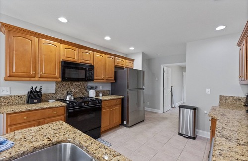 This luxurious home boasts a wealth of amenities to ensure your stay is as comfortable and enjoyable as possible. Cozy up in front of the fireplace on the oversized sectional in the living room or host pre-wedding festivities in the expansive game room, complete with a kitchenette, foosball, air hockey, and an arcade machine that features over 100 classic games. The master bath offers both a walk-in shower and a jetted tub, perfect for unwinding after a day of wedding planning. Enjoy outdoor gatherings with the grill and air fryer, creating unforgettable culinary experiences for family and friends.
