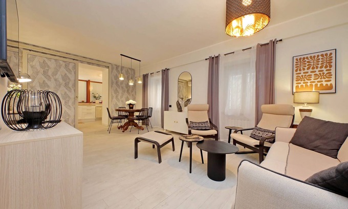 The apartment is meticulously finished, boasting a prime location, and comfortably accommodating up to 4 people. It is situated on the ground floor.