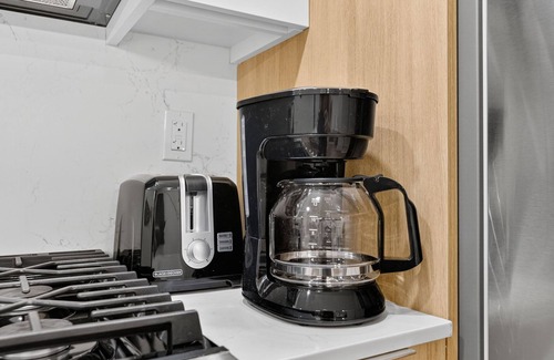 - Fully equipped kitchen with pots/pans, toaster, microwave, oven, coffee machine, coffee, kitchen knives, bakeware, dinnerware, coffee mugs, wine glasses, cooking utensils, kettle, tea, basic condiments, and more!