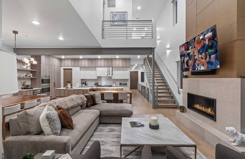 Your stay at the 4BR Apex Ski In/Out Gem comes complete with modern features designed for ultimate comfort. The spacious layout comfortably accommodates up to ten guests, making it ideal for weddings with family or wedding parties. Enjoy a fully equipped kitchen with high-end Wolf and Sub-Zero appliances, smart TVs, and a cozy fireplace perfect for evenings spent together. After a long day of festivities, unwind in the private hot tub while soaking in stunning views, or take advantage of community perks like the fitness center, heated pool, and game room.