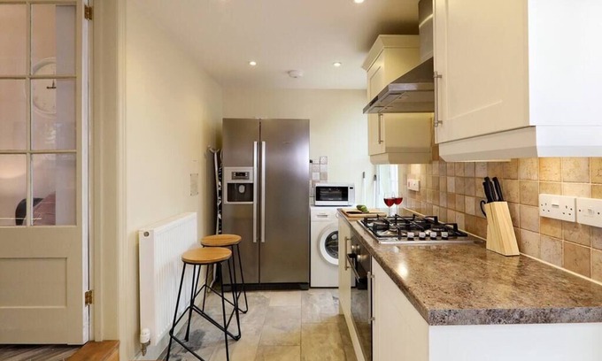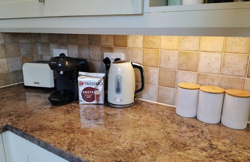 The bright and fully equipped kitchen has everything you need, whether you're preparing a quick breakfast or a home-cooked dinner. Modern appliances, including an oven, hob, microwave, and fridge-freezer, make cooking a breeze, while the well-stocked cupboards ensure you have all the cookware and utensils you need.
