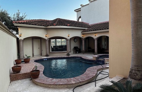 4BR Hacienda Lakeview Retreat: Pool, Fireplace, Piano + Theater Room is located in Mission. 4BR Hacienda Lakeview Retreat: Pool, Fireplace, Piano + Theater Room provides accommodation, featuring Private Pool, Bedding/Linens, Barbecue/Outdoor Cooking, among other amenities. This House features Private Pool, Bedding/Linens, Barbecue/Outdoor Cooking, to make your stay a comfortable one.