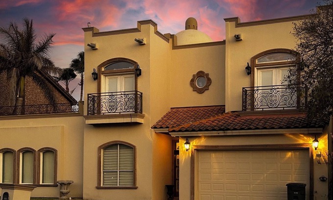 Nestled in the prestigious Cimarron neighborhood, this stunning home is just minutes from a scenic lake walk and playground, perfect for peaceful morning strolls and family fun. Designed to accommodate up to 8 guests comfortably, it’s an ideal retreat for group getaways and family reunions. Elegantly furnished and fully stocked, the home features a private outdoor pool and courtyard with a grill, individual terraces for each room, and a dedicated theater room for the ultimate relaxation and entertainment experience.