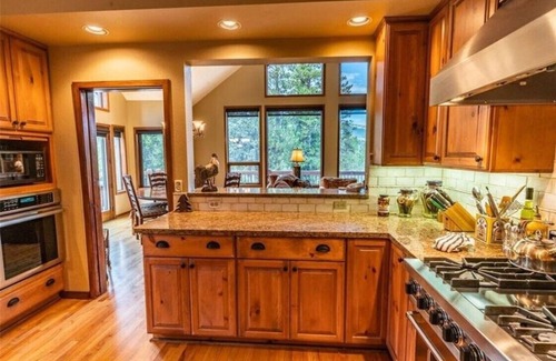 This exquisite property features an expansive open-concept living area with vaulted ceilings, allowing natural light to flood the space while showcasing majestic mountain views. Your culinary dreams come true in the fully equipped kitchen, perfect for preparing celebratory meals or catering to your wedding reception. Enjoy outdoor living on the large deck, complete with dining areas and a grill for al fresco celebrations. Additional amenities include a private hot tub for relaxation, cozy fireplaces throughout, and two master suites that ensure comfort and luxury for the wedding party.