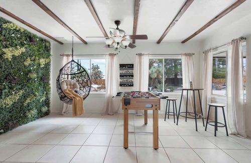 The Cactus House is ideally situated near the breathtaking landscapes of Joshua Tree National Park, making it the perfect wedding accommodation for you and your guests. This exquisite 4-bedroom home offers a unique desert oasis where memories can blossom and love can shine.