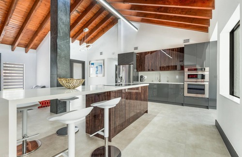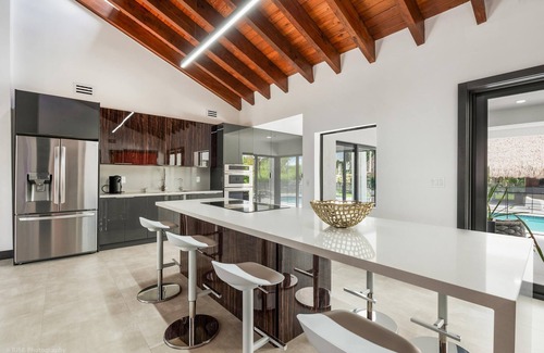 - This Miami Vice Villa home is a stunning Saltwater Heated pool/Jacuzzi spa Oasis
