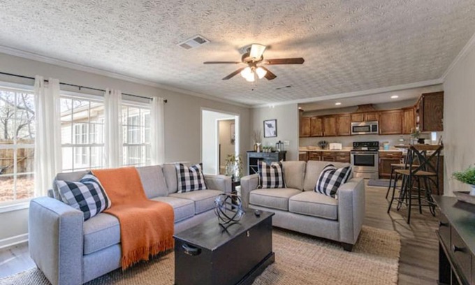 4BR Ranch Style Home A Mile From Historic Downtown offers accommodations in Cartersville, 26 miles from Kennesaw House and 26 miles from Marietta Square. This vacation home provides free private parking and a 24-hour front desk. With free Wifi, this 4-bedroom vacation home features a TV, a washing machine, and a fully equipped kitchen with a dishwasher and oven. The accommodation is non-smoking. Six Flags White Water Atlanta is 26 miles from the vacation home.