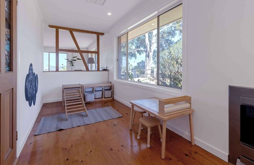 Eco-conscious and family-friendly, this spacious 4BR retreat in the Adelaide Hills runs on solar power and is fully off-grid. Set on 3.5 hectares with stunning gully views, it features two bathrooms, indoor fireplace, multiple living zones, and a playroom for kids. Enjoy a king master, two queen rooms, and a single. Meet friendly alpacas, explore nearby McLaren Vale wineries and relax a just a short drive from Adelaide beaches.