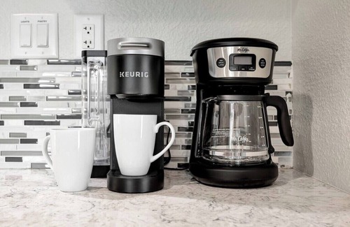 Kitchen & Dining: Cook, gather, and connect in the sleek, fully stocked kitchen with stainless steel appliances and plenty of prep space. A casual breakfast bar is perfect for morning coffee, while the dining table seats six for leisurely meals or late-night card games.