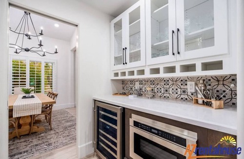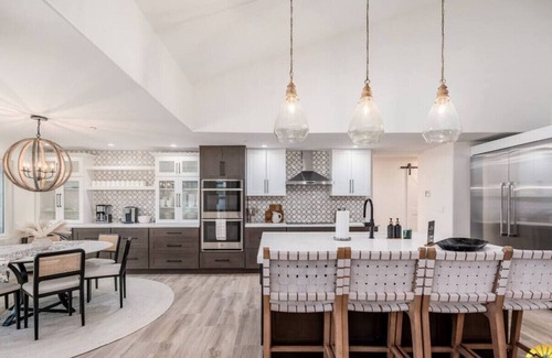 This magnificent villa boasts 5 spacious bedrooms, each complete with en-suite bathrooms, providing both comfort and privacy for your wedding party. Enjoy entertaining in style with a $250,000 custom backyard featuring a swimming pool, spa, waterslide, two outdoor fireplaces, and extensive seating areas to host intimate receptions. Additionally, indulge in fun-filled activities within the property, such as a theater room, gym, game tables, and a shuffleboard court—ensuring there's something for everyone to enjoy during downtime before or after the festivities. With two fully-stocked kitchens and multiple dining options, catering to your wedding needs has never been easier.