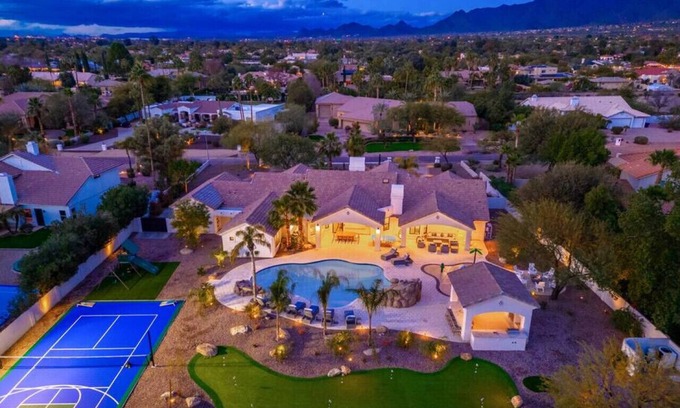 Situated in the heart of Central Scottsdale, this remarkable property places you just moments away from world-class golf courses, exquisite restaurants, vibrant shops, and picturesque trails perfect for leisurely walks, hikes, or biking adventures. Take advantage of the area's rich offerings, allowing you and your guests to explore everything Scottsdale has to offer, all while enjoying the luxury of your private retreat. Choose the 4Million$Designer WaterslideWonderland+Theatre+Gym+SportCourt+Shuffleboard Court for your wedding accommodation, and create unforgettable memories in a spectacular setting that embodies romance and celebration.