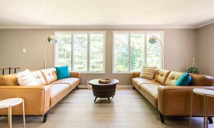 This spacious home has 2 separate bedrooms, with 3 Queen Zinus memory foam beds that sleeps 6 guests. The open concept kitchen/ living room has 2 couches for additional sleep space. We feel 6 guest is standard however more could be possible if utilizing the 2 couches or 2 futons