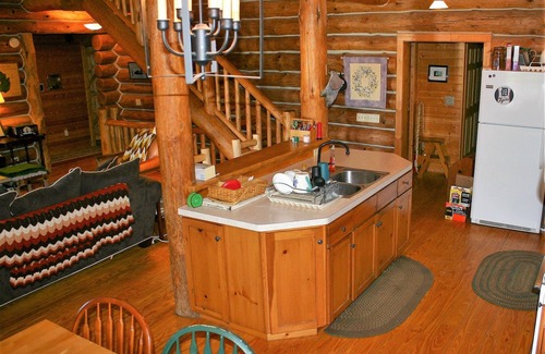 The main floor holds the kitchen, large dining table, living area, one and a half baths, and two bedrooms. The walkout basement has another large living area, with a full bath, large bedroom, utility room (small 4th bedroom) and small garage/work area. The open loft has one queen and three double beds, and several twin beds perfect for the little ones to experience cabin life. But don’t worry about noise from the first floor – that fresh air will knock you out - and the kids - the moment your head hits the pillow.
