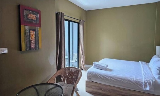 We are a quiet building that has welcomed many guests around the world. In the room, there are A/C, Large Wardrobe, water heater, minibar fridge, Android TV, outdoor patio set, table with 2 chairs, chinawares. We have a small convenient store nearby and easy access to Bus station. We are close to Don Muang Air port ( our regional airlines hub), Immigration office, Impact Muang Thong Areana and many tourist attractions.