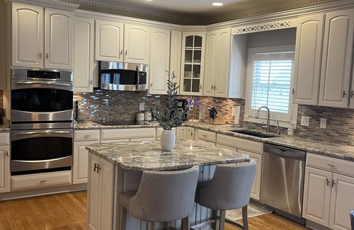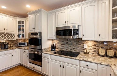 Escape to this spacious house in picturesque eastern Louisville. With 5 bedrooms, including 2 king beds and 3 queen beds, this gorgeous golf course property is perfect for a group of guests looking for a relaxing getaway. Golf course and club privileges can be arranged at two of Louisville's finest courses.